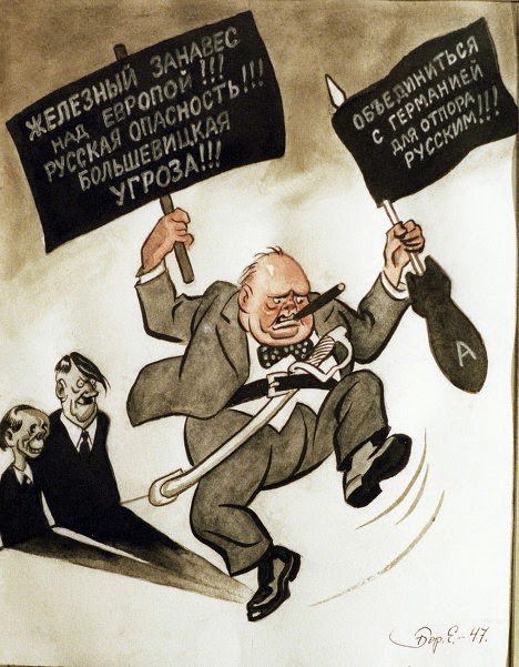 Даже перед «железным занавесом», Италию сдерживали в её попытках вернуться к нормальному национальному существованию «притязания, выученного коммунистами, маршала Тито на бывшую итальянскую территорию», и восстановление сильной Франции было затруднено пятой колонной, работающей « в полном единстве и абсолютном повиновении указаниям, получаемым из коммунистического центра.»
